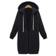 Este abrigo de invierno largo para mujer está diseñado para el uso diario durante la temporada invernal. Presenta un cierre frontal con cremallera, capucha integrada y un corte alargado que cubre el torso y las caderas. Incluye bolsillos frontales para un uso práctico en desplazamientos cotidianos.