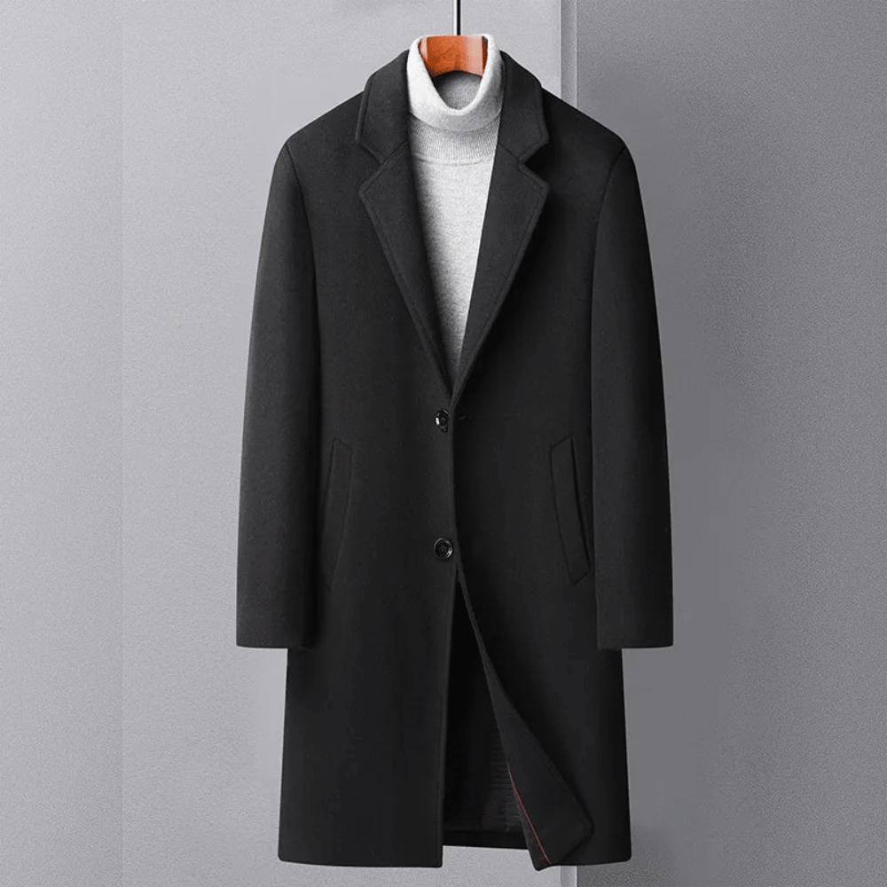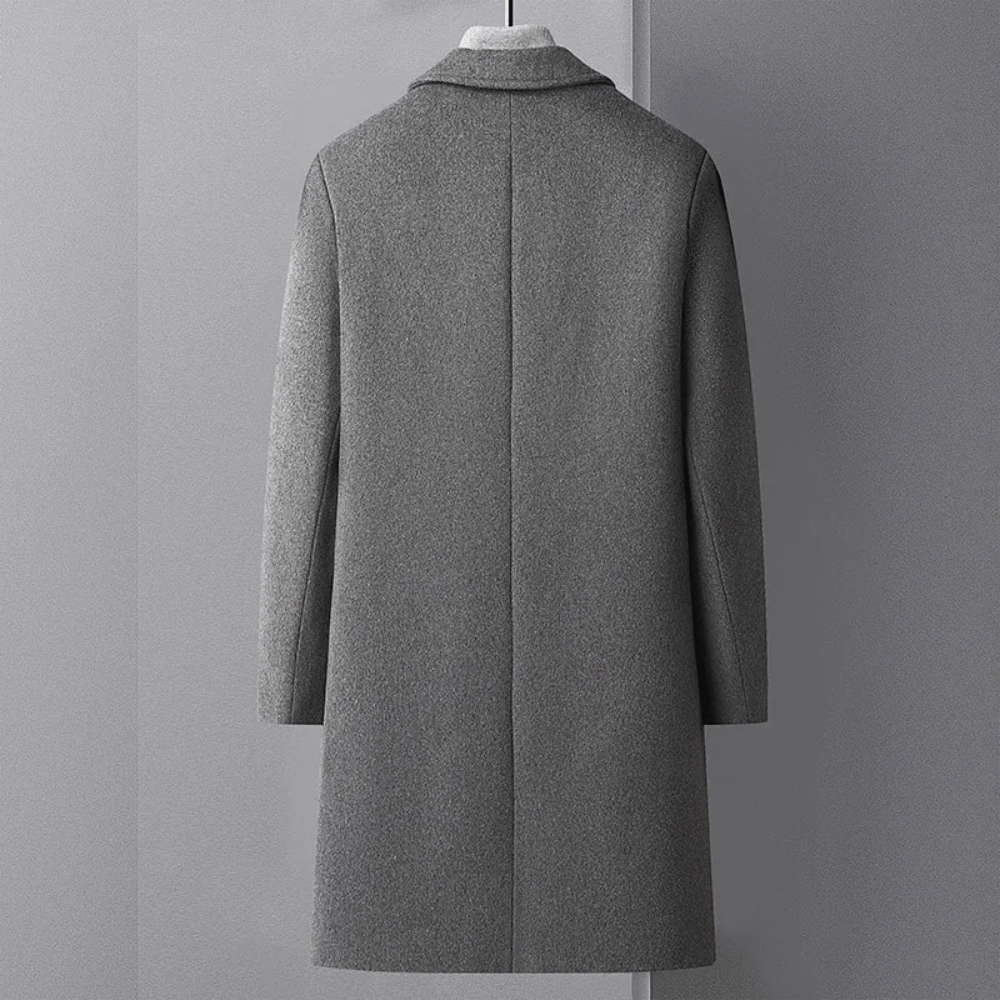 Este abrigo está diseñado para ser utilizado durante días de bajas temperaturas. Presenta un corte largo con cierre de botones en la parte frontal. Es adecuado tanto para el uso diario como para ocasiones formales.