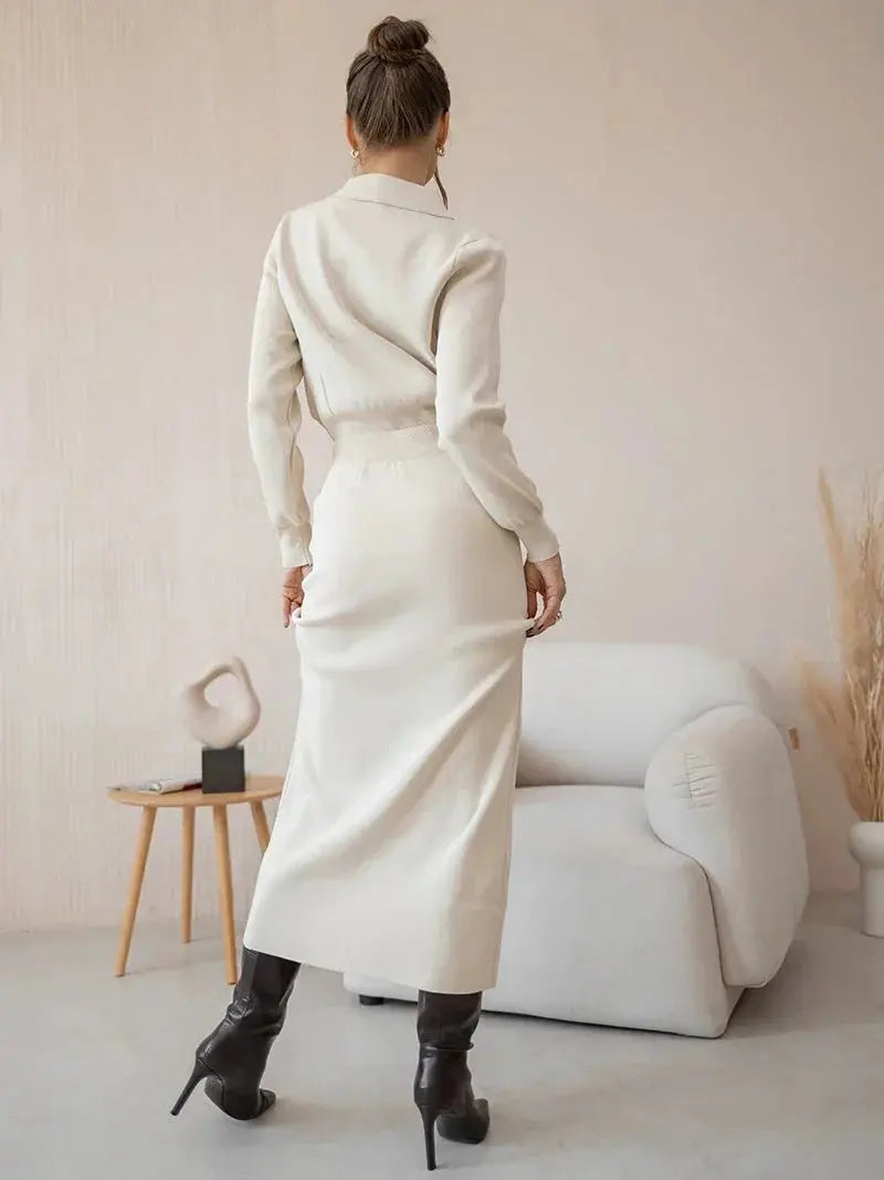 Este conjunto incluye un blazer estructurado y una falda a juego diseñados para uso profesional. Está pensado para entornos de trabajo, reuniones y eventos formales donde se requiere una presentación cuidada. Las piezas pueden utilizarse juntas o por separado para distintas combinaciones de vestuario.