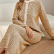 Conjunto de dos piezas compuesto por una chaqueta de manga larga y una falda midi a juego para eventos formales. La chaqueta presenta un cierre frontal con botones decorativos y un cuello redondo en contraste, mientras que la falda tiene un largo por debajo de la rodilla. El diseño está pensado para ofrecer un conjunto coordinado adecuado para reuniones formales y ocasiones especiales.