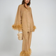 Este conjunto incluye un top amplio y un pantalón coordinado diseñado para actividades en casa o situaciones informales. Su corte fluido permite movimiento durante los momentos de descanso. Presenta un acabado decorativo en ambas piezas para un uso funcional en el día a día.