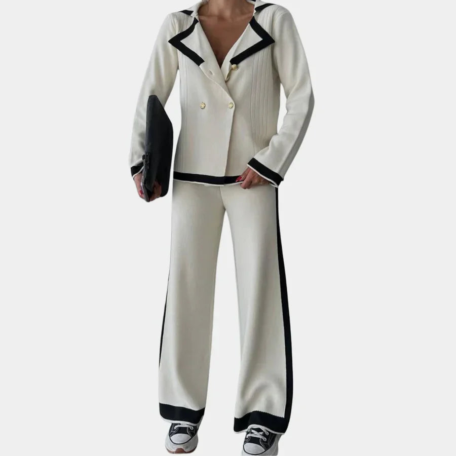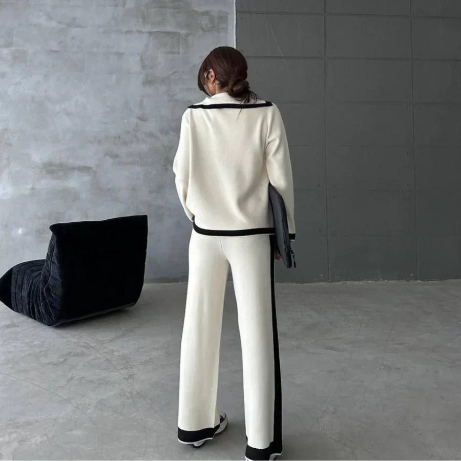Este conjunto incluye un crop top y un pantalón de talle alto adecuados para actividades cotidianas o encuentros sociales. Ofrece una combinación completa sin necesidad de añadir otros elementos. El diseño coordinado facilita un uso práctico en diferentes situaciones.