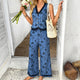 Conjunto De Dos Piezas Con Gilet Estampado Floral Y Pantalón A Juego Para Mujer | Ideal Para Uso Diario