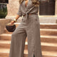 Conjunto De Dos Piezas Con Top Abotonado Y Lazo En La Cintura Para Mujer | Ideal Para Ocasiones Informales