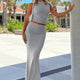 Conjunto de dos piezas compuesto por un top sin mangas con cuello alto y una falda larga a juego. Diseñado para el uso diario en entornos informales y actividades de tiempo libre. El diseño coordinado permite llevar ambas prendas juntas o combinarlas por separado.