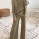 Este conjunto incluye un top de manga larga y un pantalón de pierna ancha diseñados para uso cotidiano. La cintura elástica del pantalón facilita el ajuste y la comodidad durante el día. El diseño liso permite coordinar ambas piezas con otras prendas.