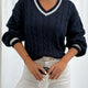 Jersey De Manga Larga Con Motivo Trenzado Y Cuello En V Para Mujer | Ideal Para Otoño E Invierno